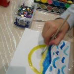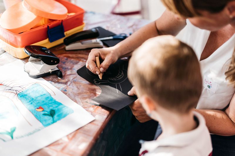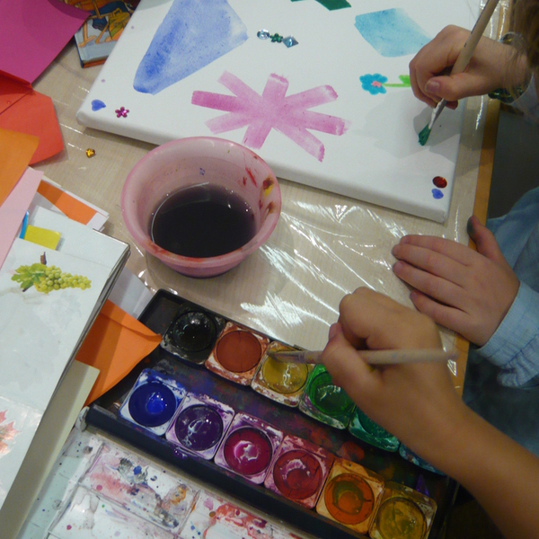 Bei uns wird’s bunt! Am Basteltisch werden Kinder und Erwachsene gemeinsam kreativ – schnipseln, malen, kleben & kleistern - und kleine Kunstwerke erschaffen. Kinderhände voller Glitzer und Farben - oder ist das doch Ketchup?